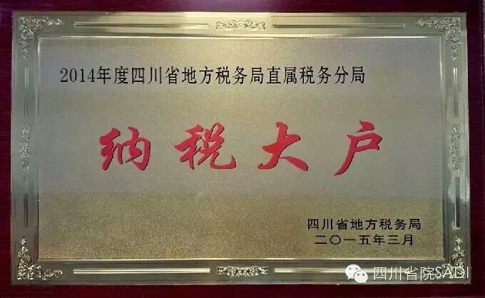 2015年4月3日,四川省地方税务局直属税务分局的各位领导莅临我院,专程为我院送来2014年度税收成果表彰及“纳税大户”荣誉奖牌。