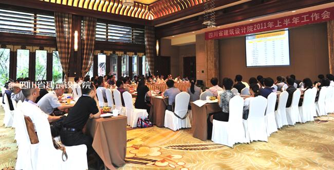 2011年8月25日下午,我院在青城山青城豪生国际酒店成功举办了“四川省建筑设计院2011年度上半年工作会”。会议由李纯院长主持,院领导及各单位、部门班子成员参加,其主要内容为院战略规划宣贯,组织机构及人员调整、经营计划目标分解、市场形势分析及下半年工作重点部署。