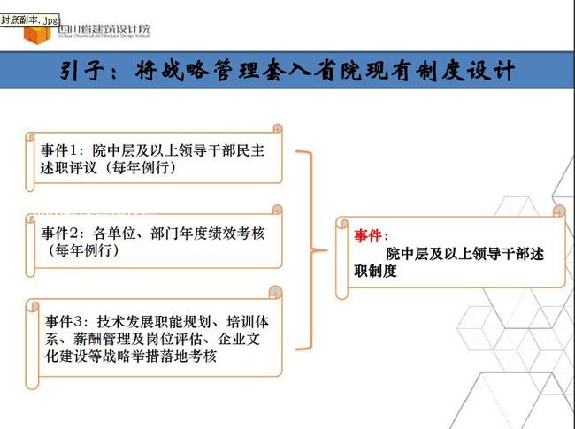 接着,李院长还对以战略目标分解执行为导向的新的中干述职导则,也通过举例的方式进行了详细地讲解。新的述职导则是为了更好地完善院内部战略管理机制,将战略管理活动转化为院常态性工作,规范和简化工作流程,切实保障战略行动的有效实施,结合院年度中干述职及部门考核相关工作制定的,目的是结合战略管理机制,优化中干年度述职及考核工作,实现以年度战略执行、计划目标完成为核心的战略管理及评价体系。述职汇报采用PPT的呈现方式,一定程度上是让我们的中层领导更加习惯台上演讲,培养综合演说能力的一种途径。述职内容以战略执行汇报、目标完成情况、分析总结、提出改进建议及下一年工作计划及目标等为核心内容并将其作为重要和首要的考核依据,兼顾个人德能勤廉及心得思考,即强调了我院将实施以目标为导向的战略执行精细化管理,同时也能起到引导中层领导骨干战略思维练习的作用。新的述职导则还兼顾了中层领导干部个人考核和部门考核结果的相关性及一致性,将以往个人与部门的分开考核简化为合并考核管理,在更加符合实际的情况下提升了管理效率,考核指标的设置也更加公正、公平、合理,在统一标准化的前提下体现出差异性。